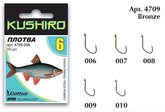 Крючок COTTUS Kushiro Плотва hi-bronze №9 10шт 4709009