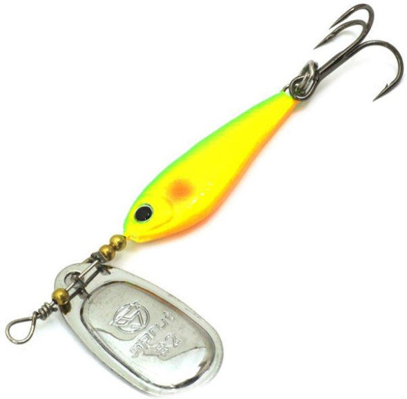 Блесна Sprut Alpina Comet Spinner Сердечник у блесны Alpina Comet Spinner от бренда Sprut выполнен в виде маленькой рыбки. Он работает как стабилизатор во время проводки и обеспечивает хорошую дальность заброса. Секрет уловистости этой приманки заключается в красивой игре округлого лепестка. Он создает интенсивные колебания, распространяющиеся далеко за пределы облавливаемого участка. Лепесток без сбоев работает как на закрытых акваториях, так и на реках с умеренным течением. Покрытие лепестка хорошо отражает свет под разными углами. Красивая игра бликов вызовет интерес даже у пассивного хищника. Блесны Sprut Alpina Comet Spinner оснащены острым тройником