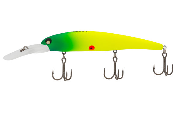 Если есть универсальный воблер, то это он. Это именно та приманка которая должна быть в коробке у любого охотника за хищником, будь то начинающий или уже опытный рыбак. При чём данная приманка может использоваться как для ловли троллингом (на дорожку), так и для ловли в заброс. Его заявленные характеристики заглубления при троллинге (дорожке) 7-9 метров, но это не значит что вы не сможете его провести и по 4-5. Вам нужно просто уменьшить отпуск или увеличить толщину используемой плетёнки (лески) и вуаля. Простая и вместе с тем уловистая форма обеспечила ему огромную популярность, а цветовая палитра для данной модели столь обширна, что позволит найти «свой» цвет для самого взыскательного рыбака.